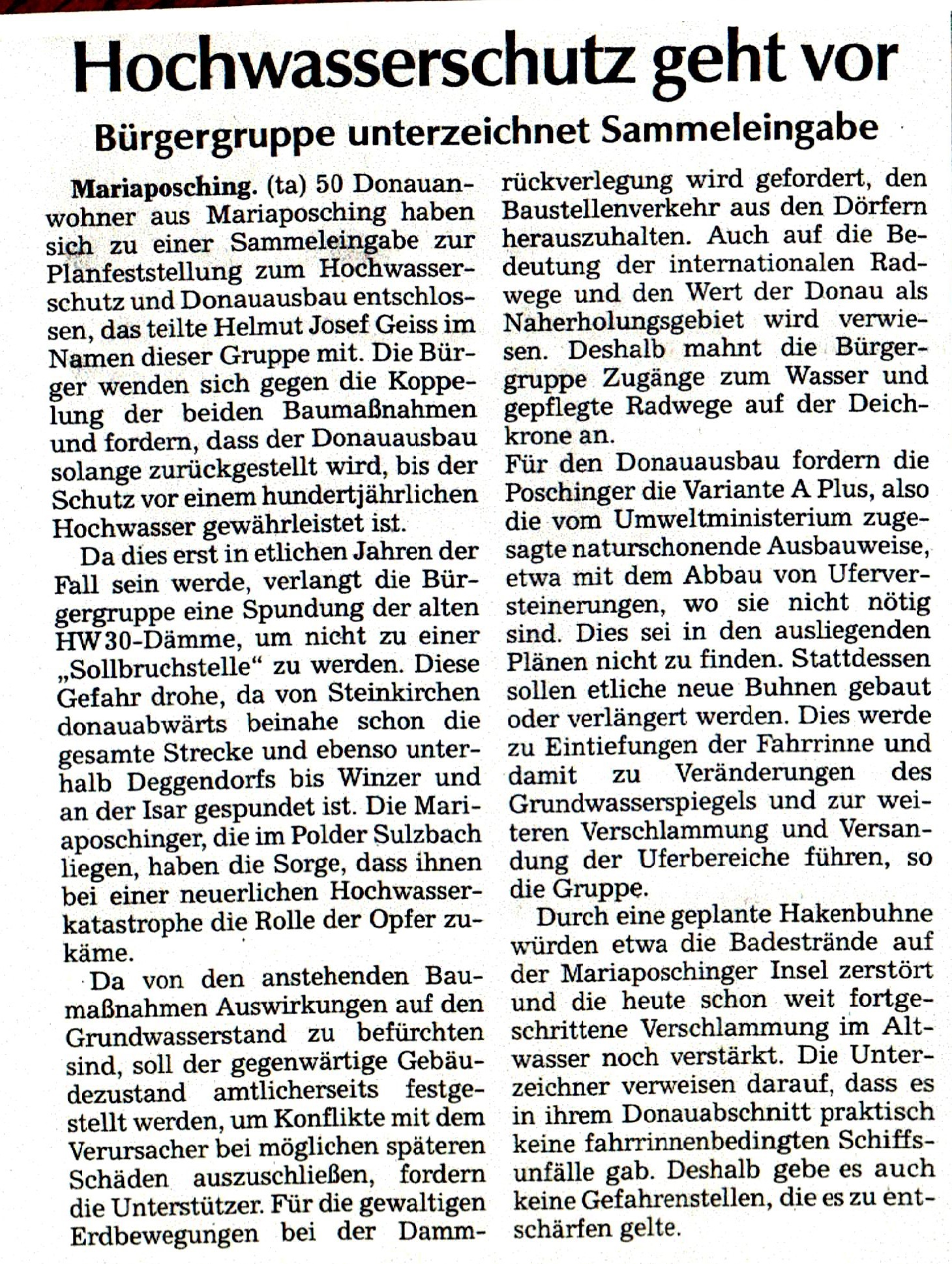 Bürgereinwendung Planfeststellung Hochwasserschutz und Donauausbau