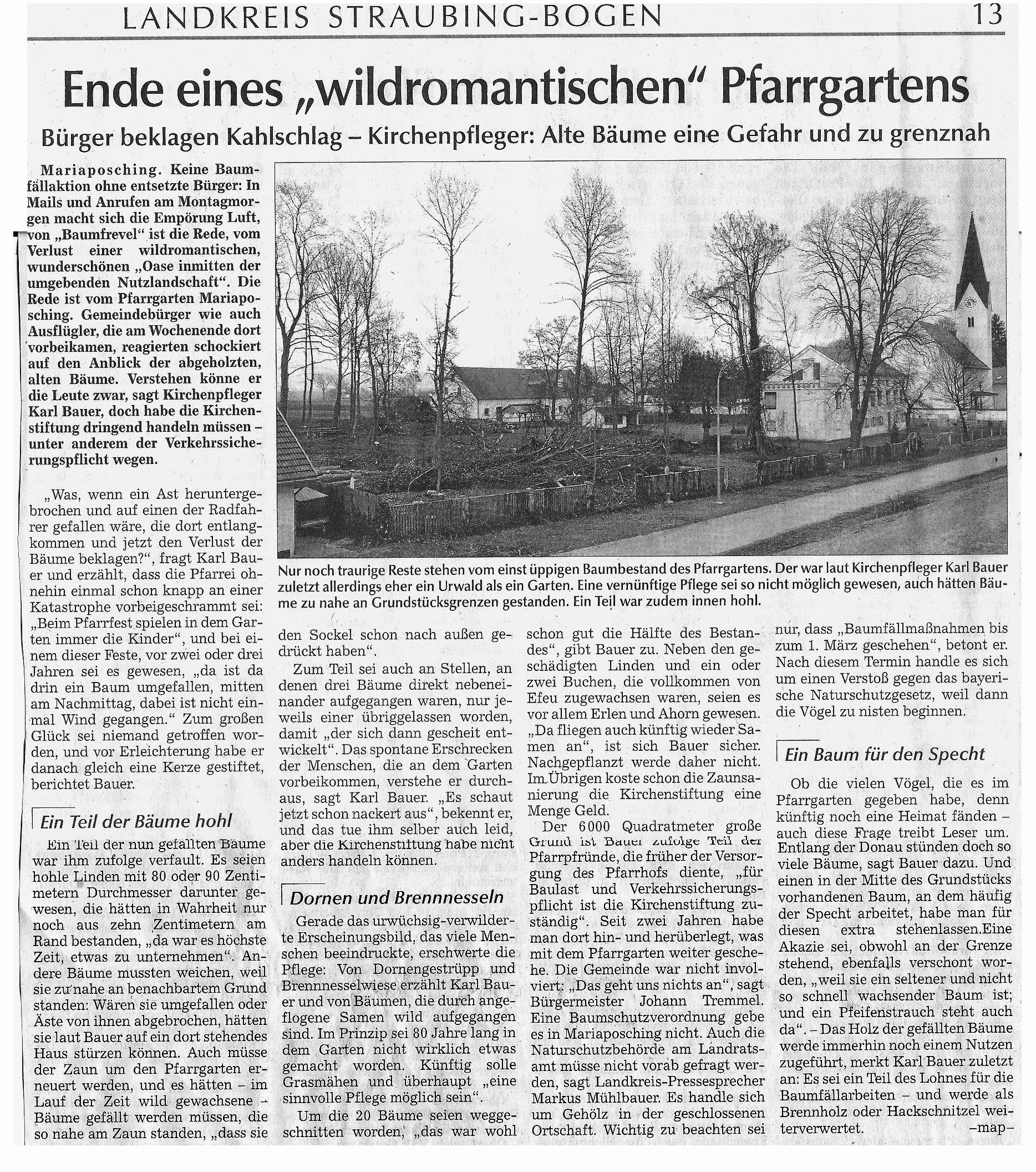 Bilddokumentation nach der Zerstörung durch die Kirchenverwaltung
