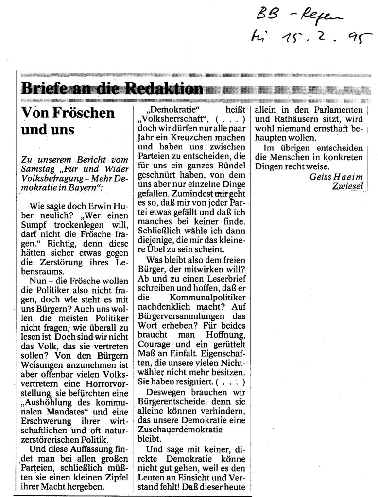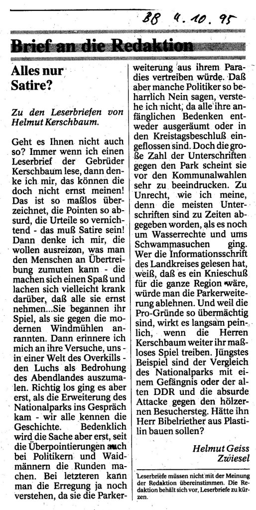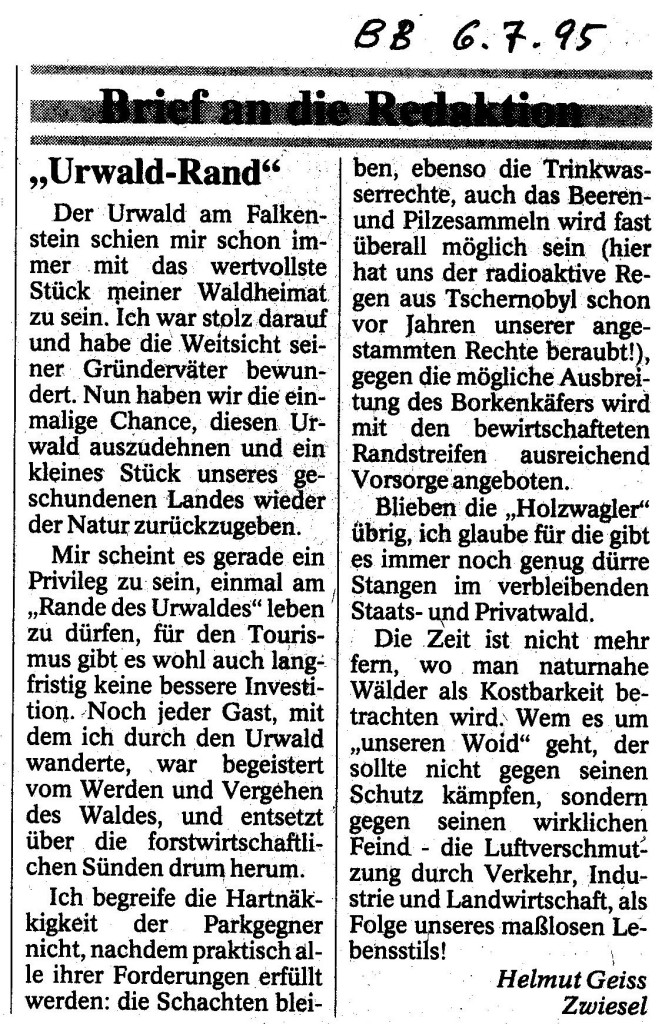 Helmut Josef Geiss - Original-Leserbriefe von 1995