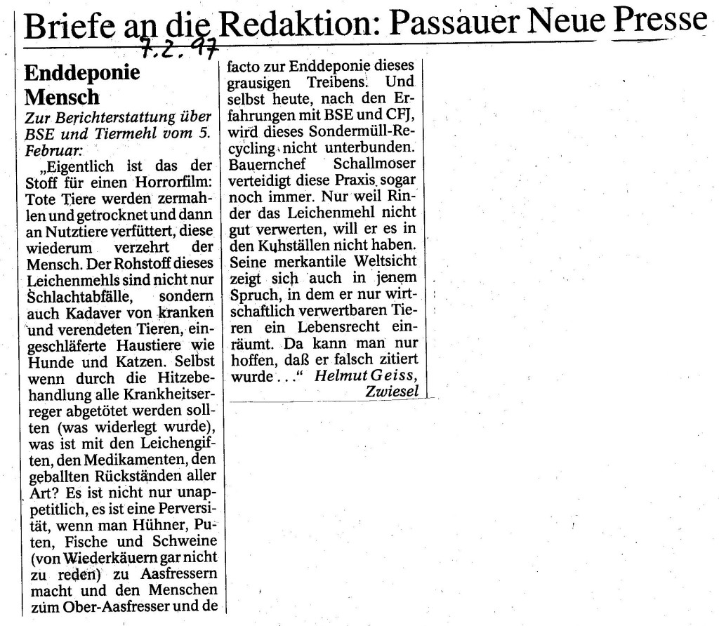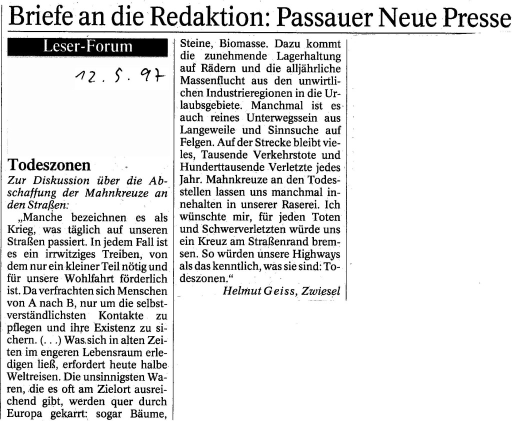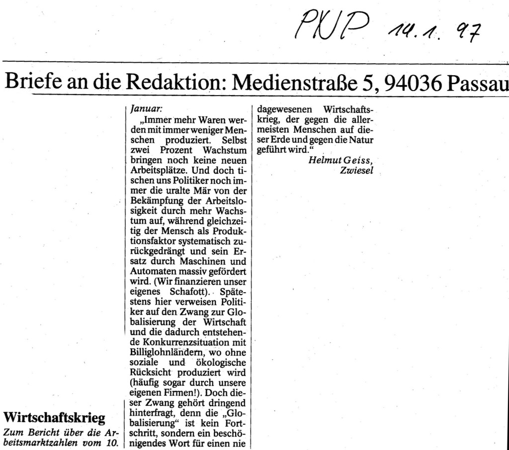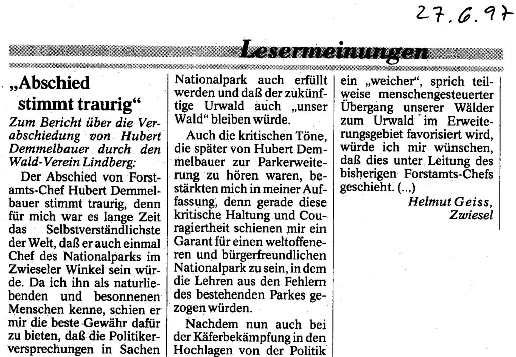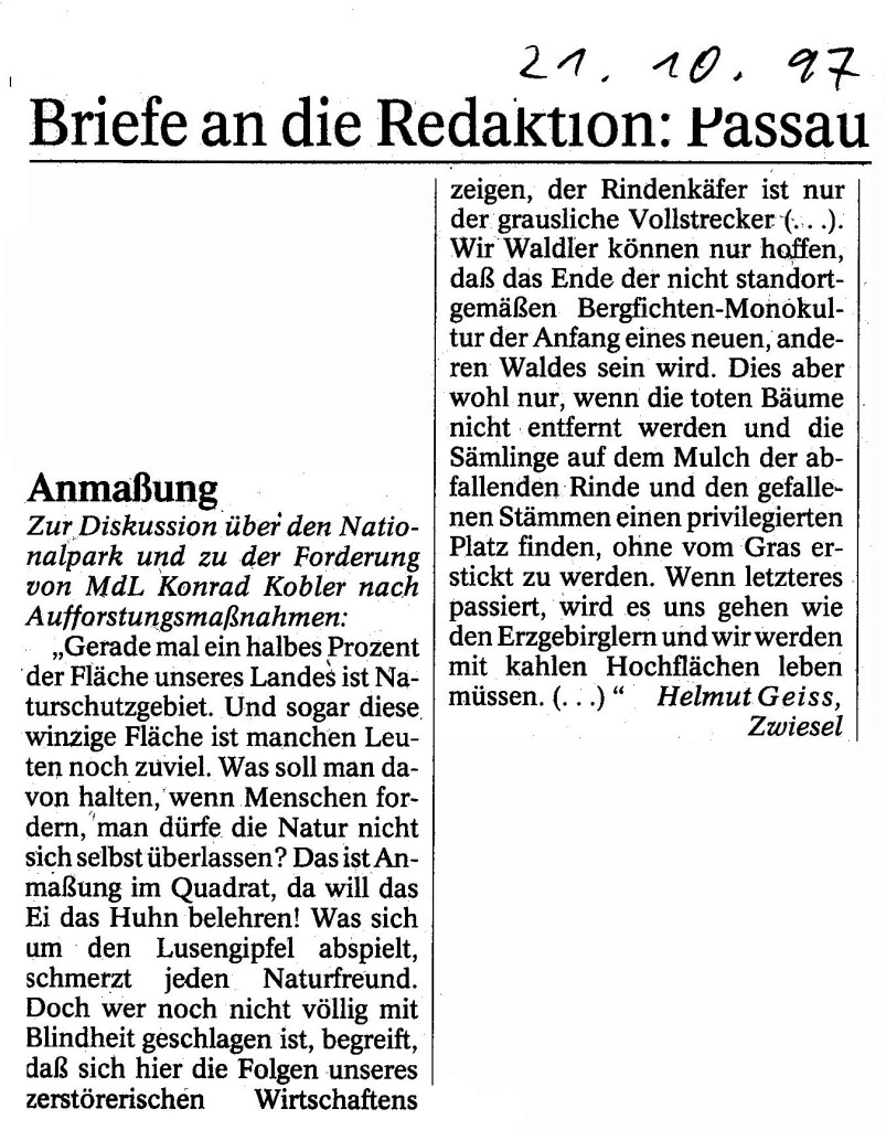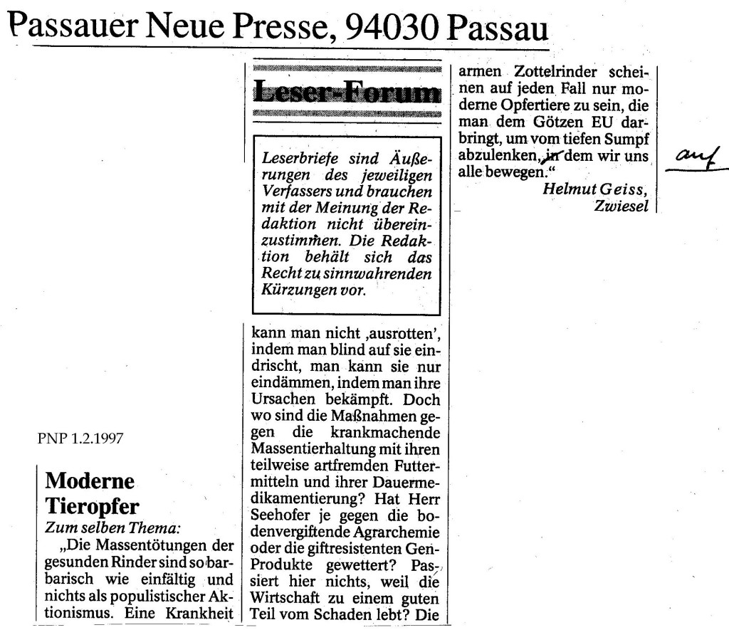Helmut Josef Geiss - Original-Leserbriefe von 1997