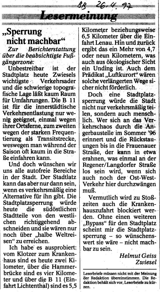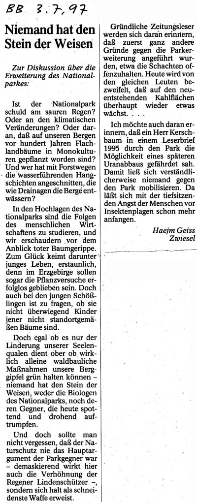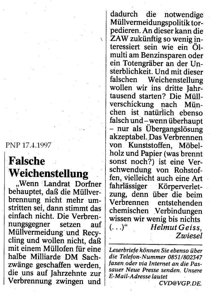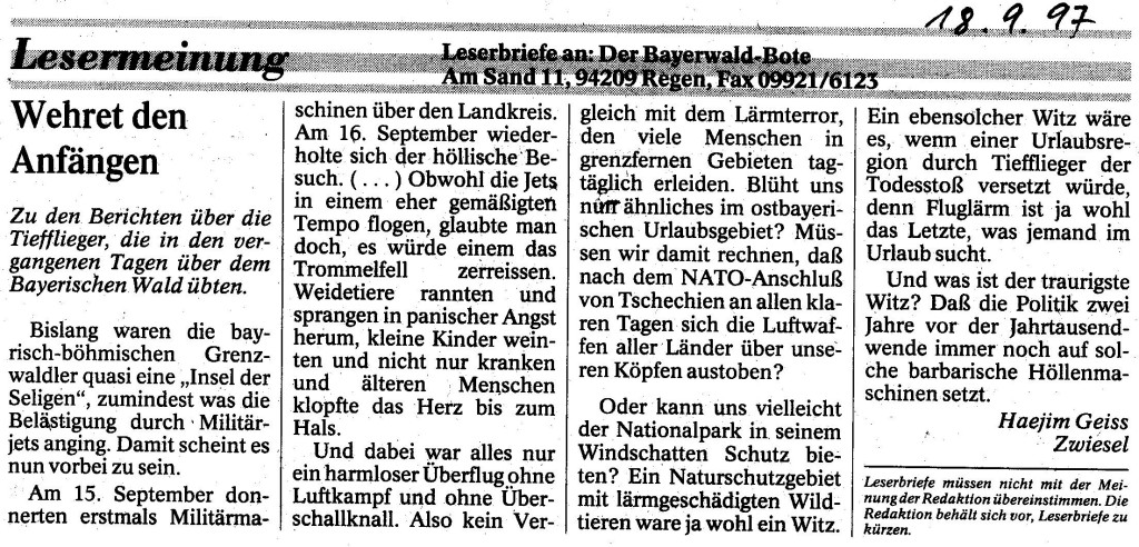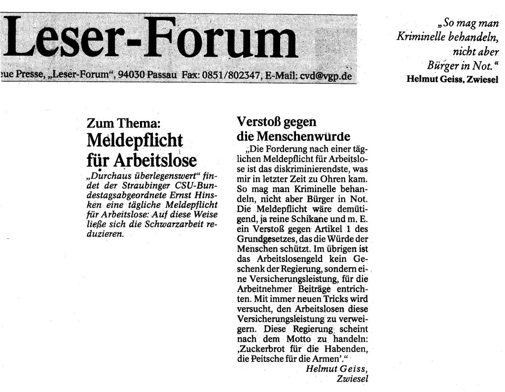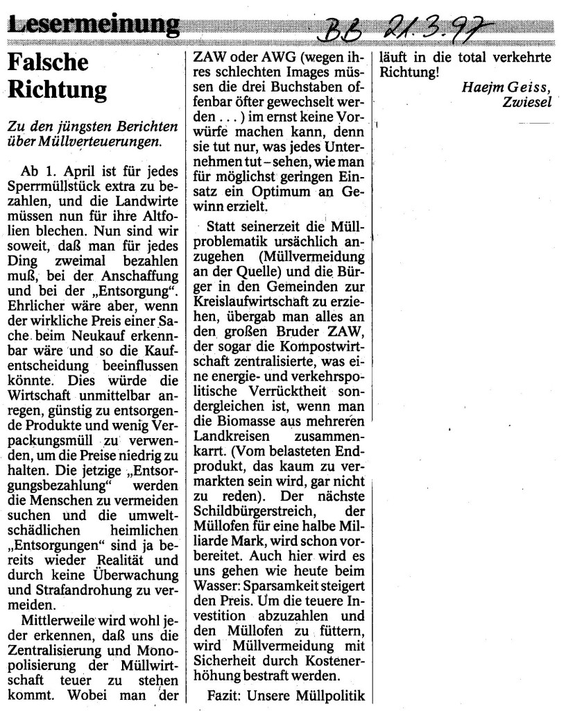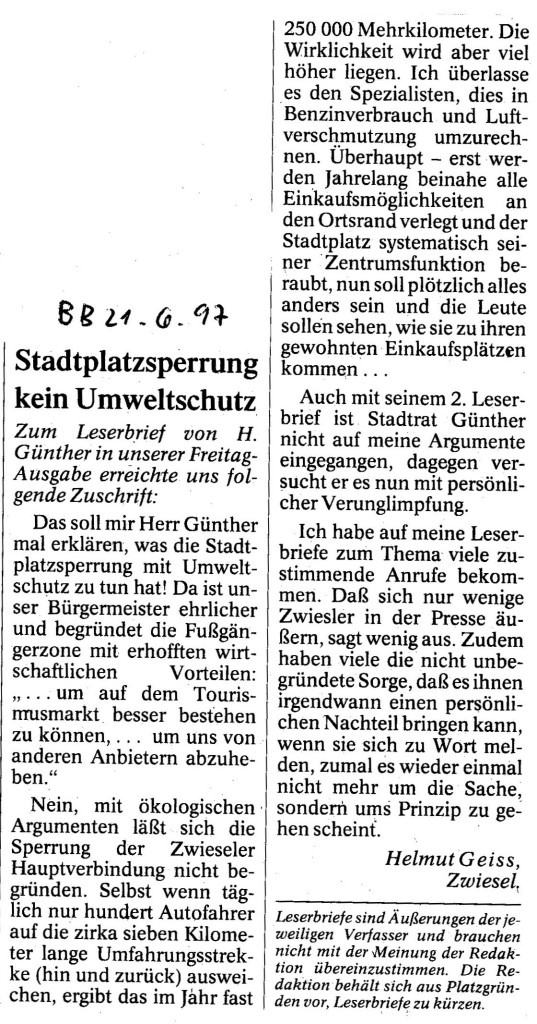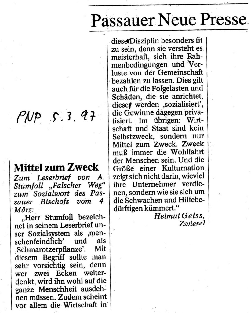 Helmut Josef Geiss - Original-Leserbriefe von 1997