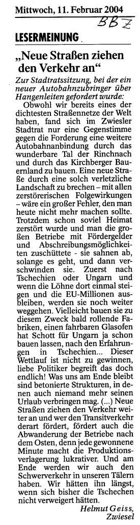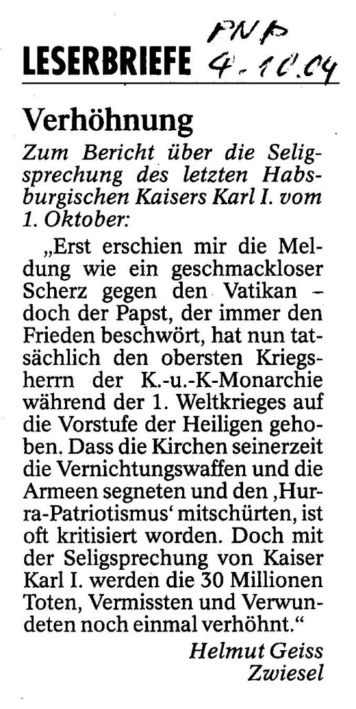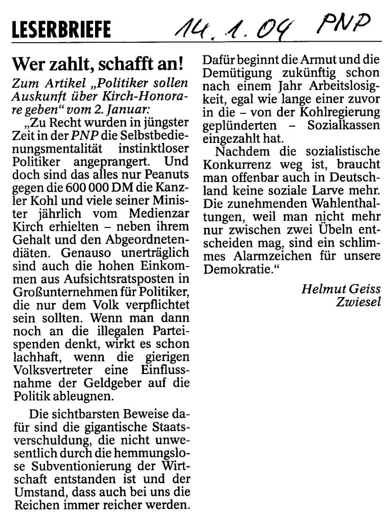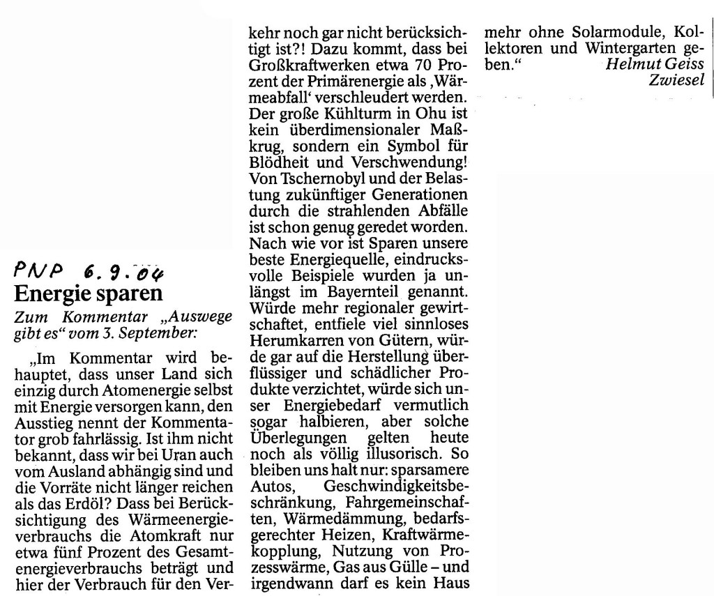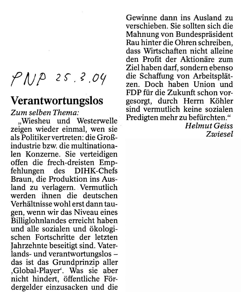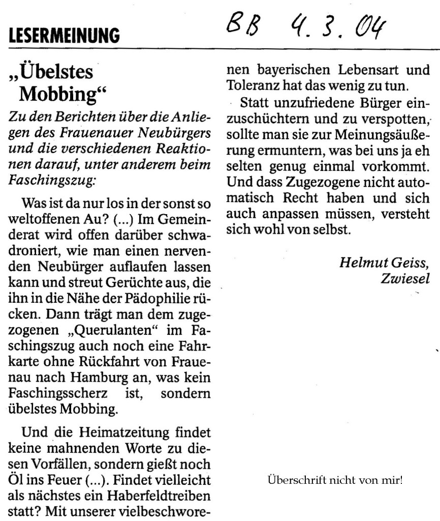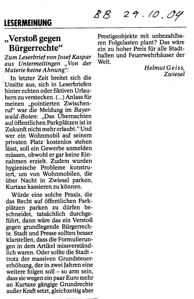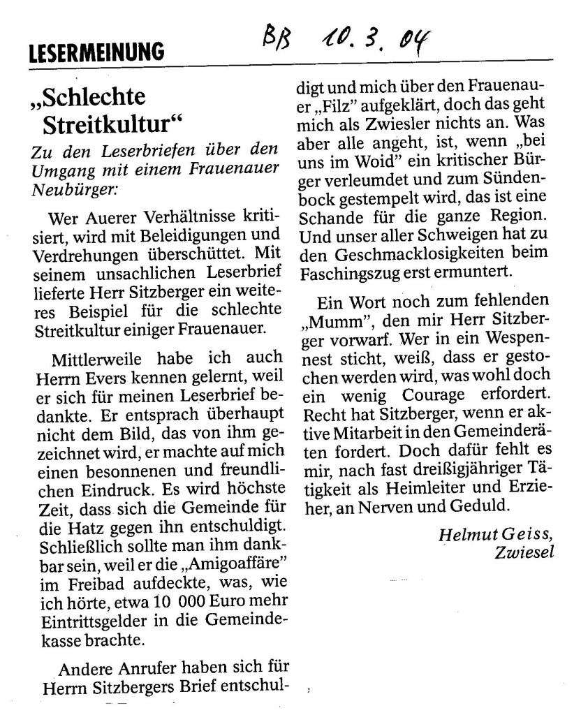 Helmut Josef Geiss - Original-Leserbriefe von 2004