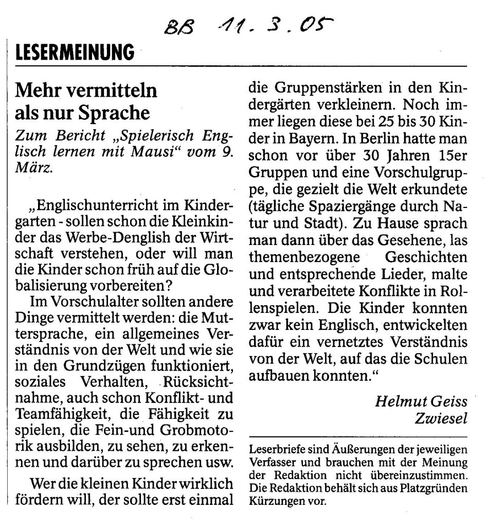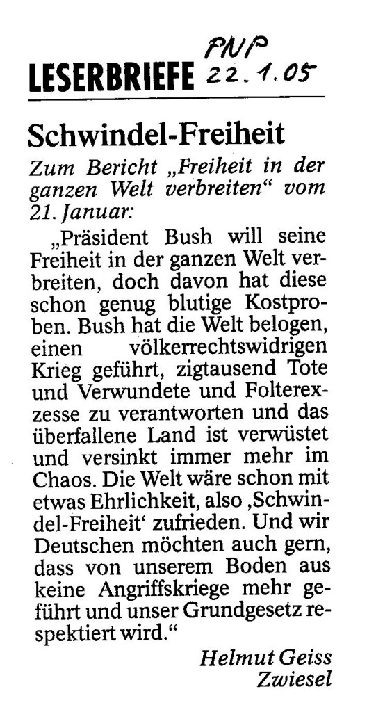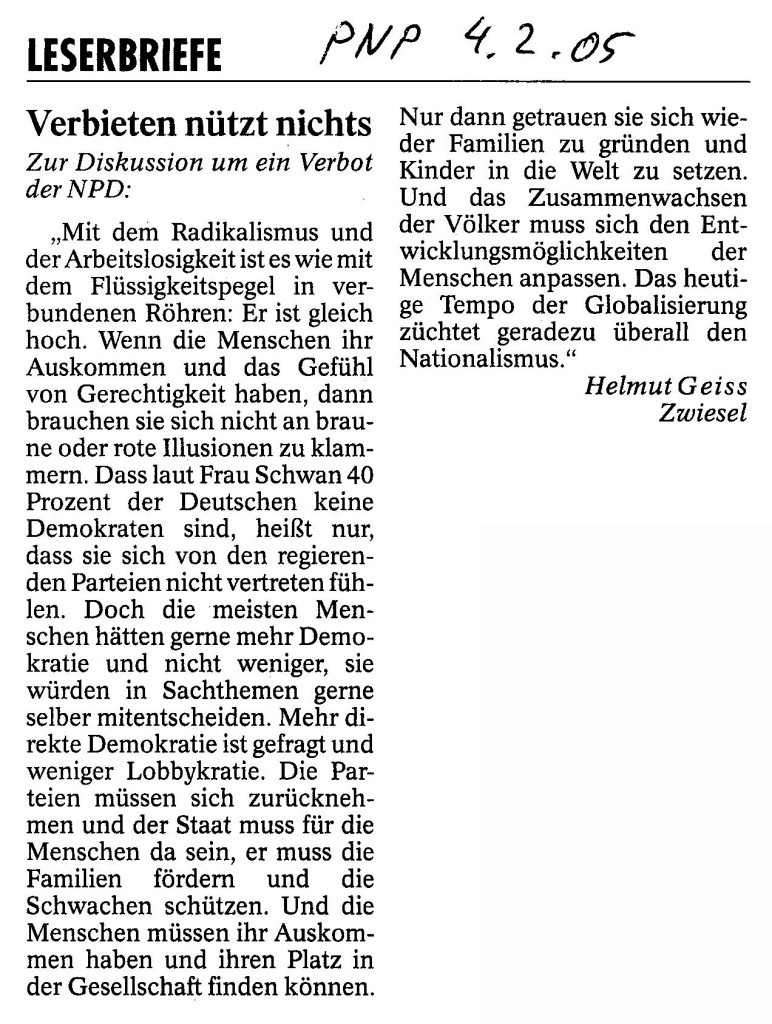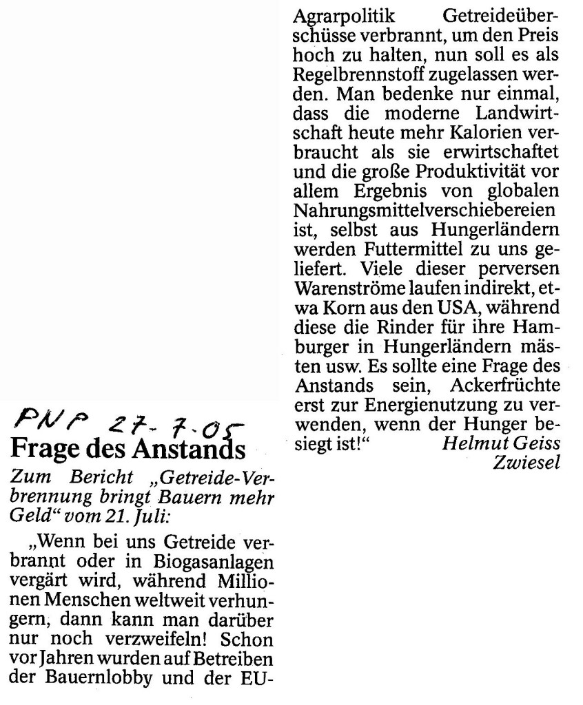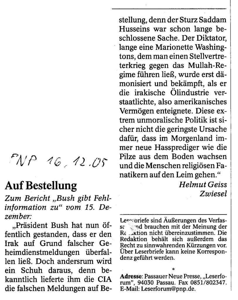 Helmut Josef Geiss - Original-Leserbriefe von 2005