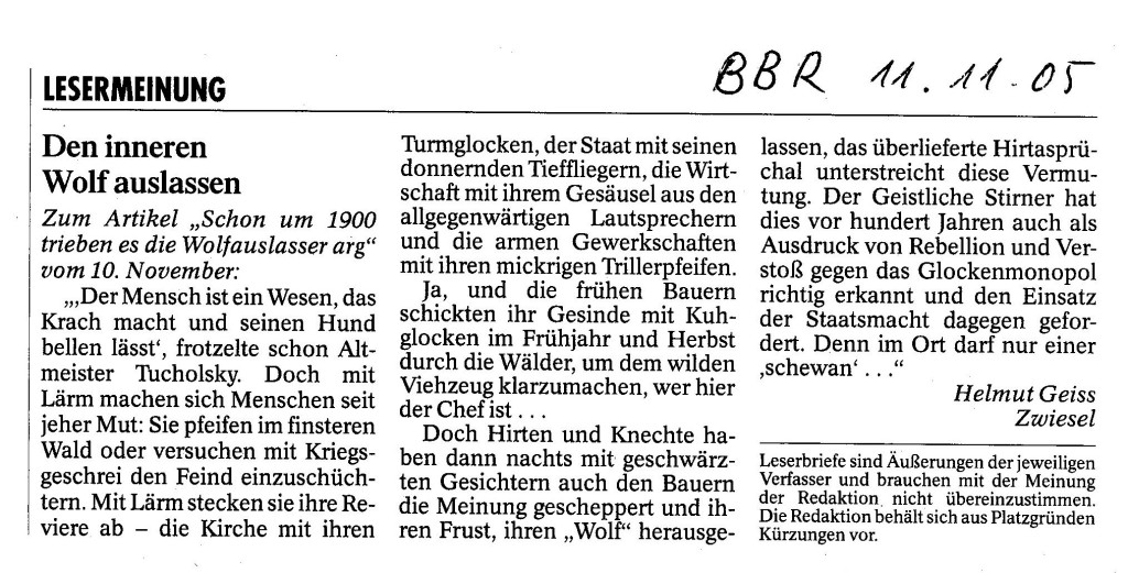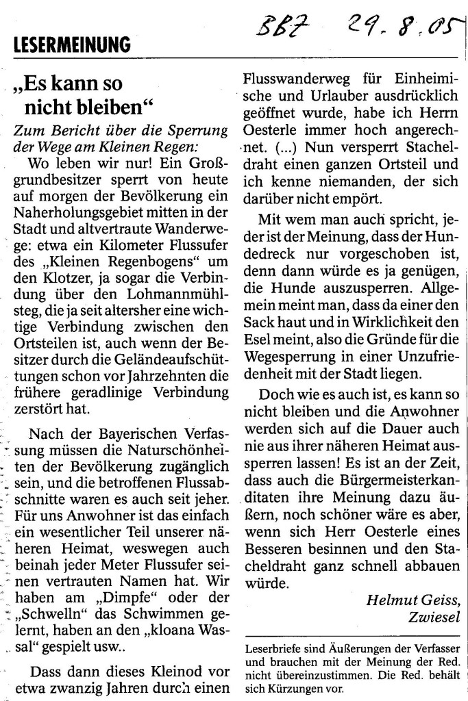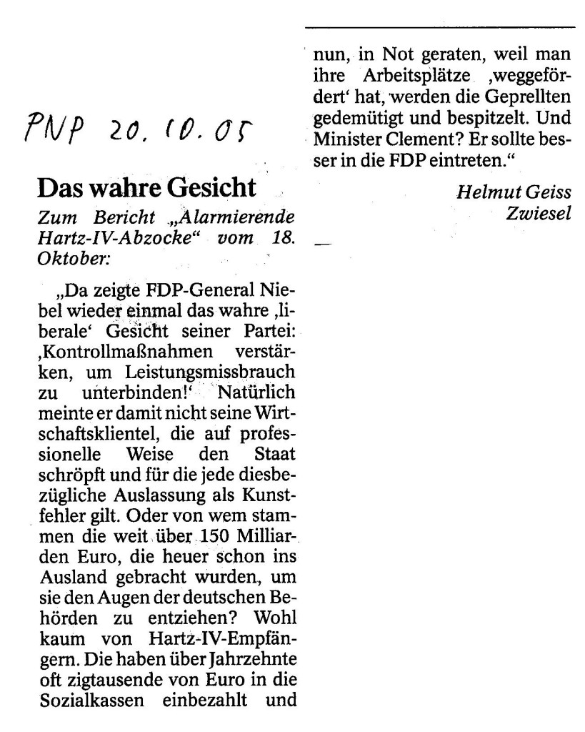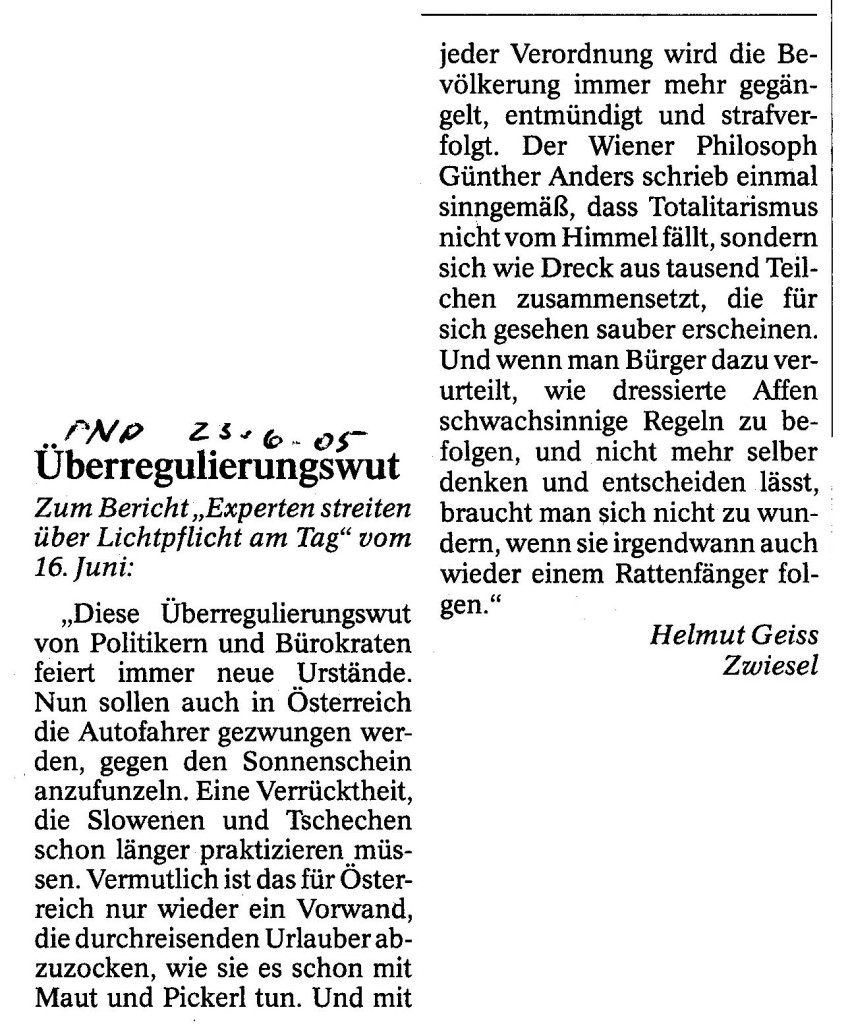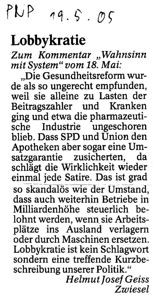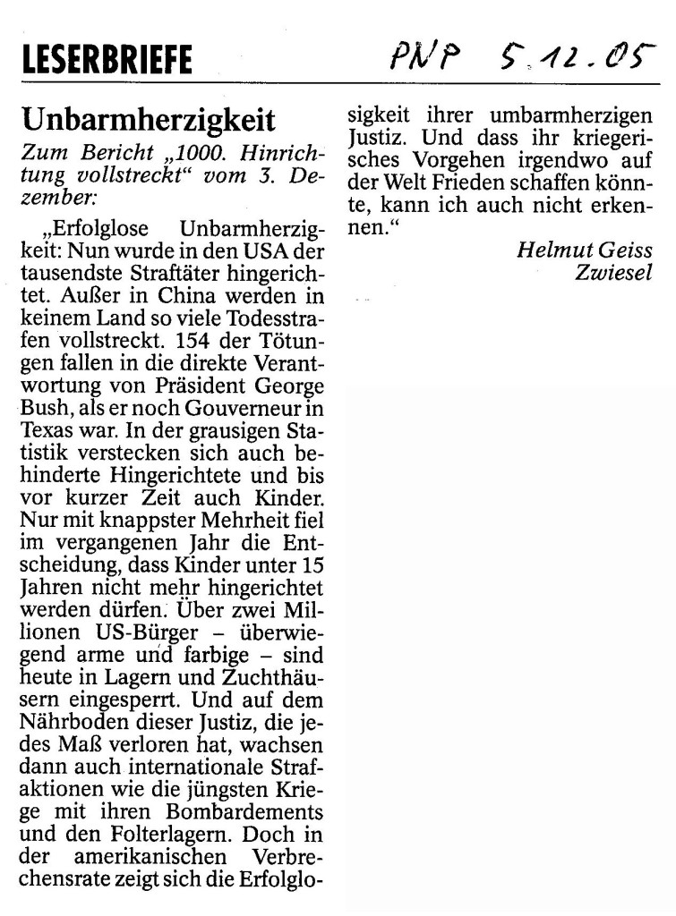 Helmut Josef Geiss - Original-Leserbriefe von 2005