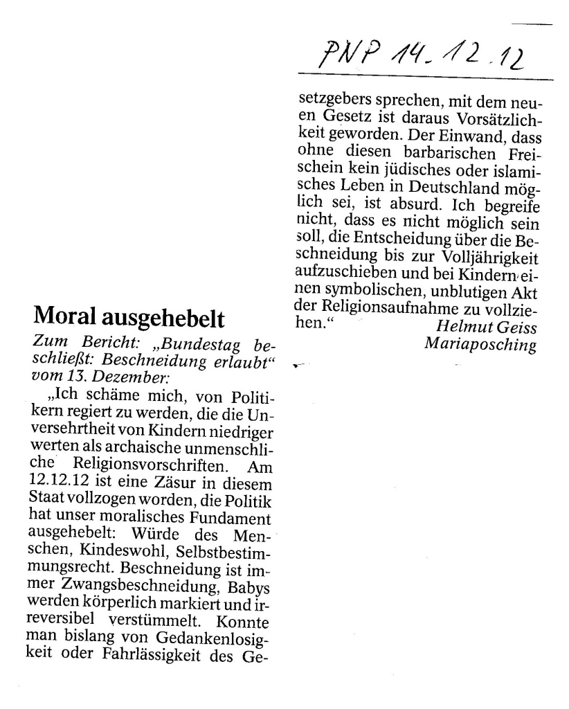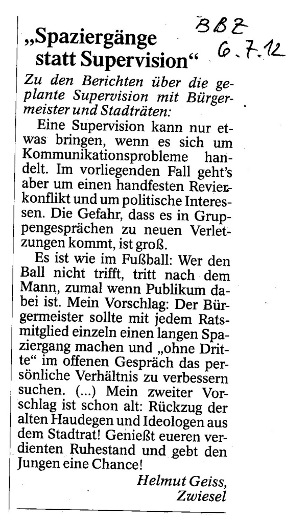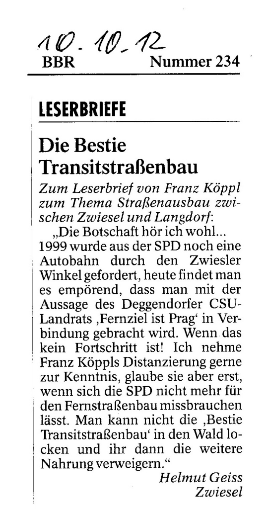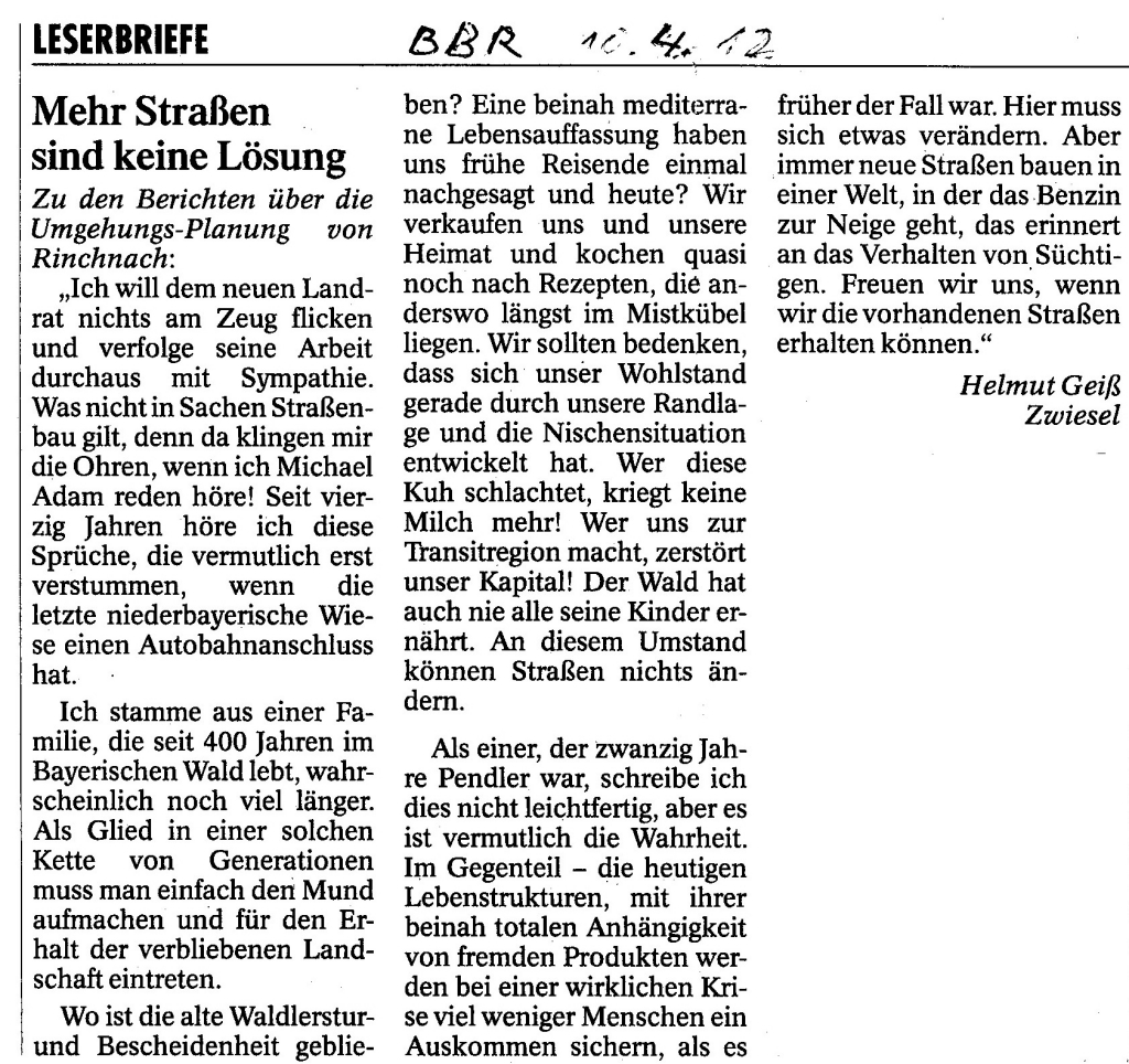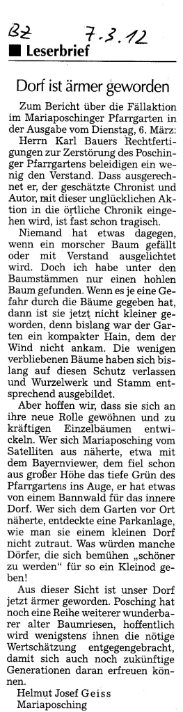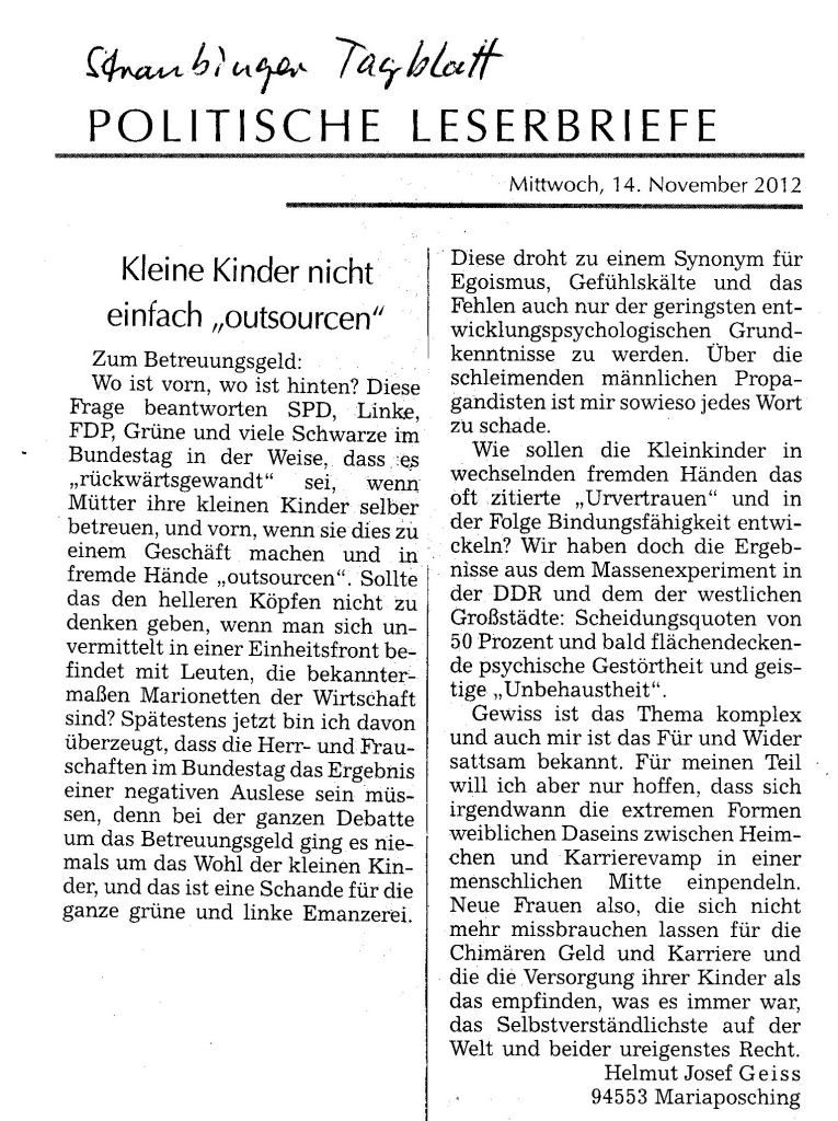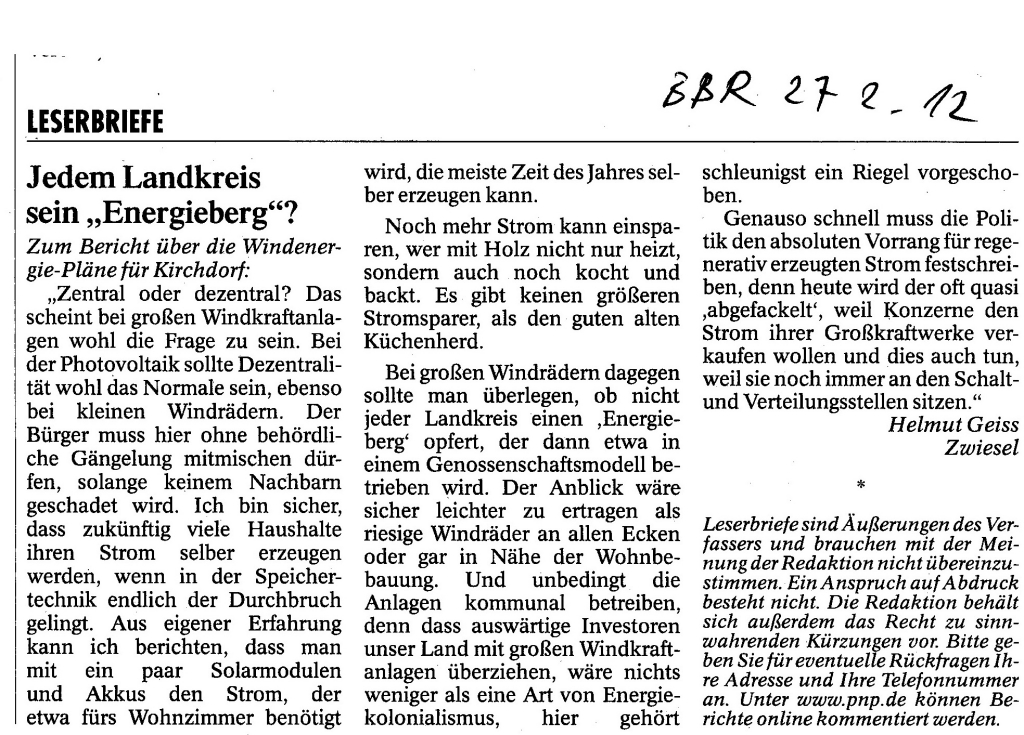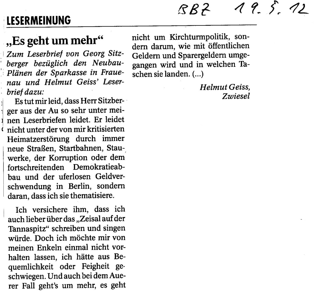 Helmut Josef Geiss - Original-Leserbriefe von 2012