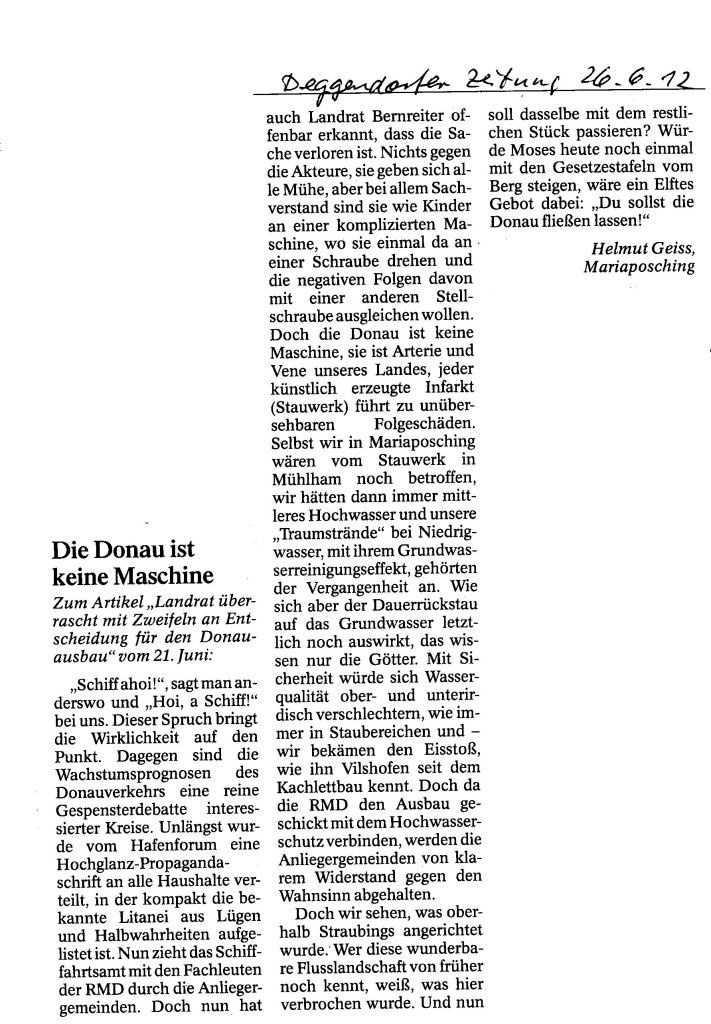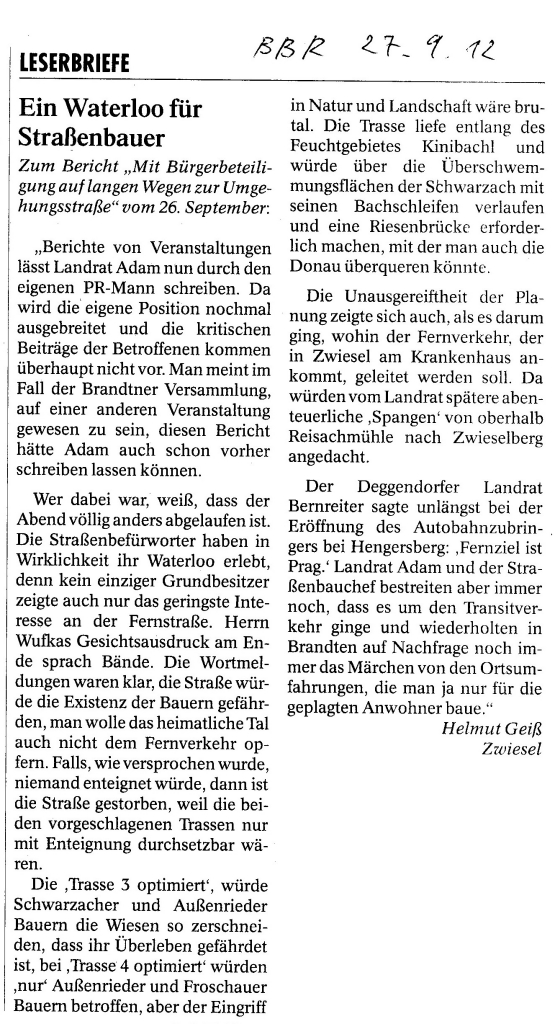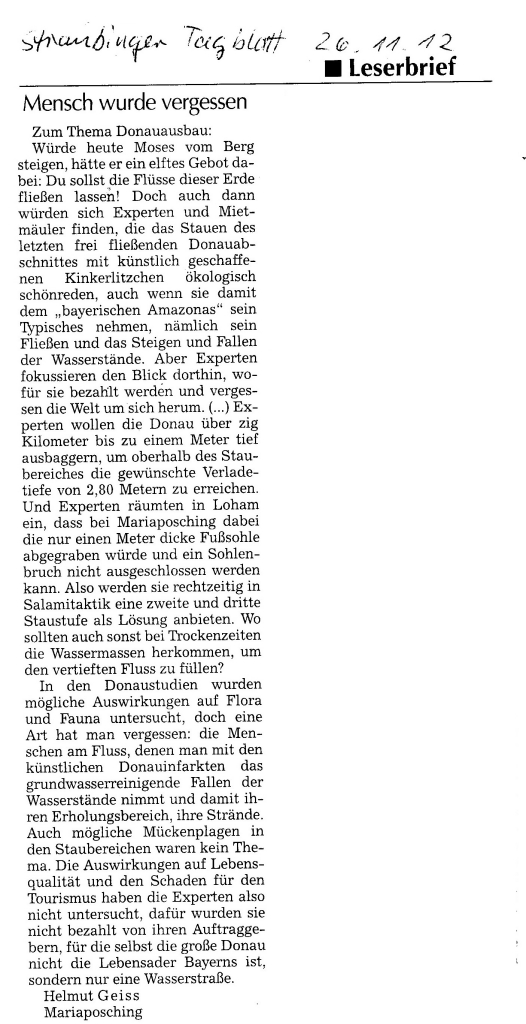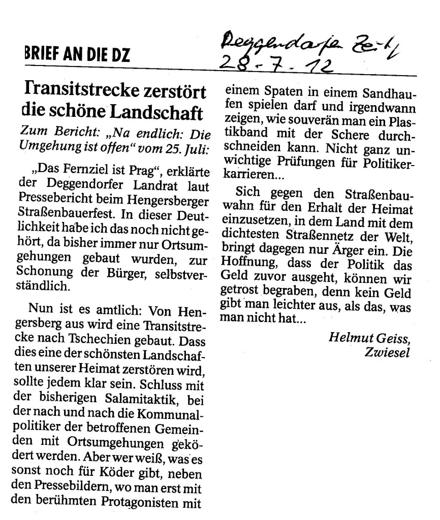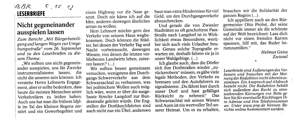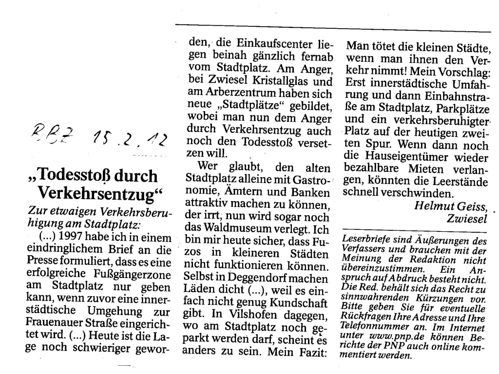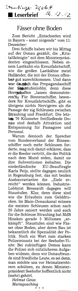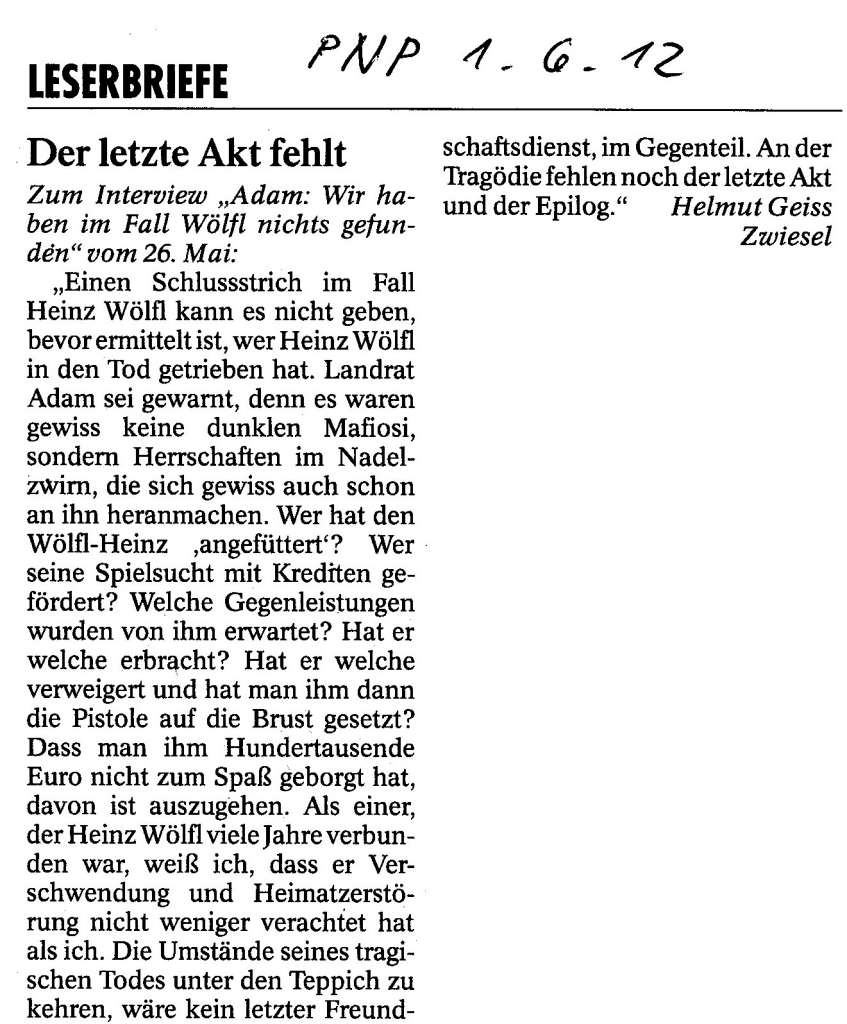Helmut Josef Geiss - Original-Leserbriefe von 2012