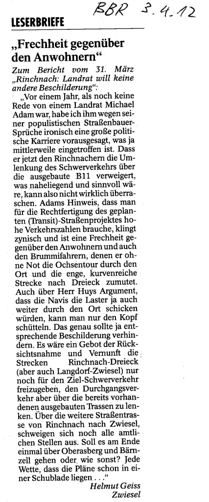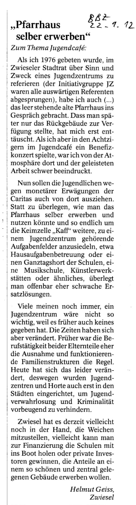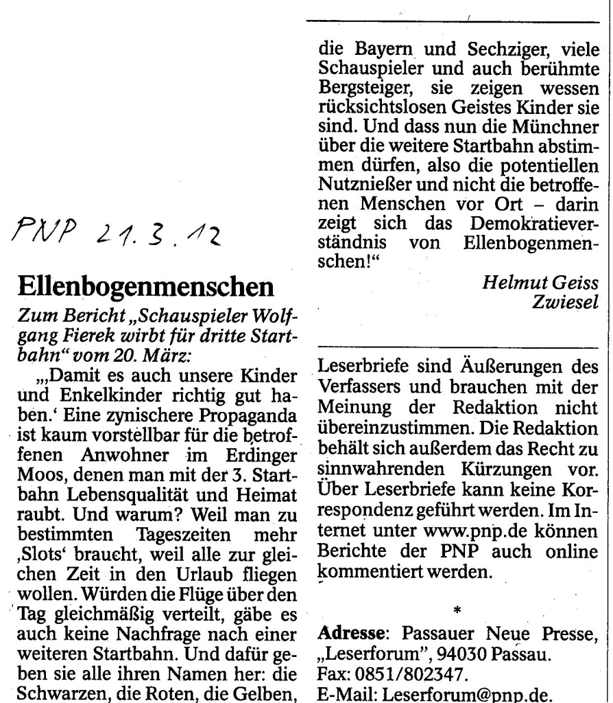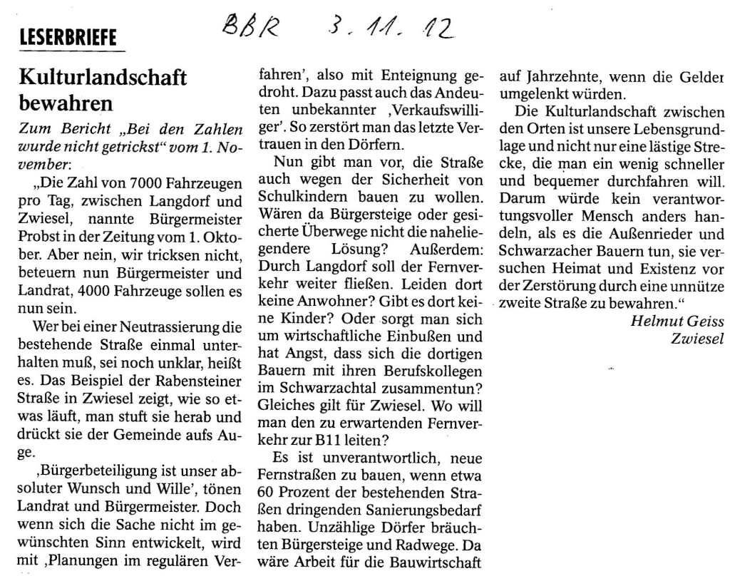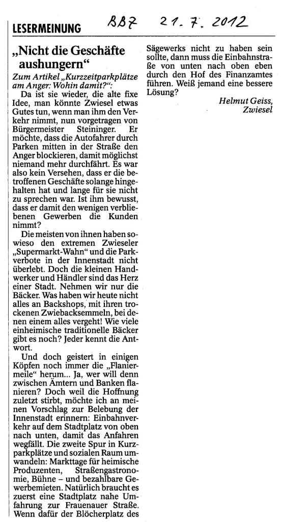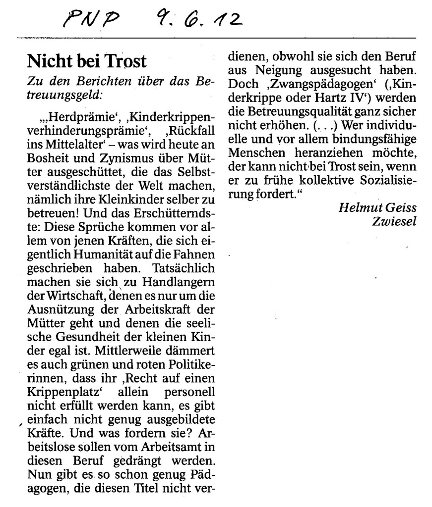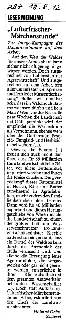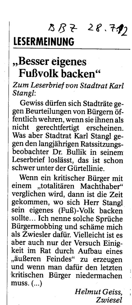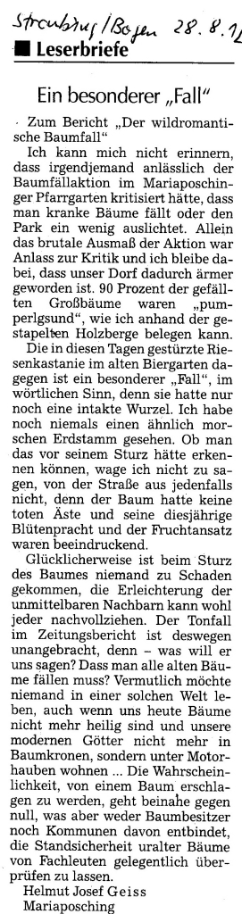 Helmut Josef Geiss - Original-Leserbriefe von 2012