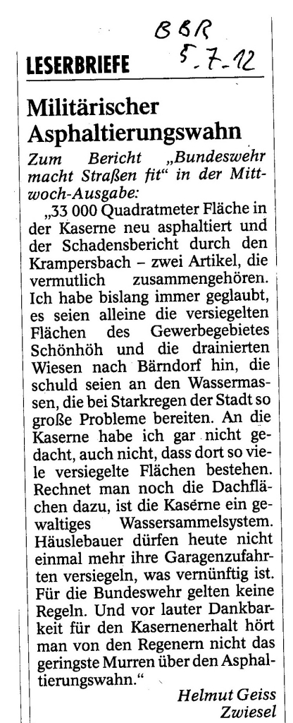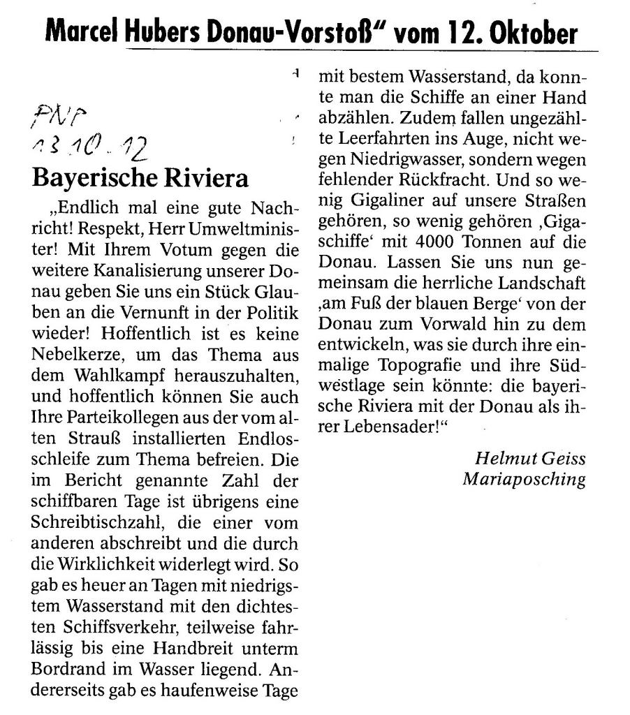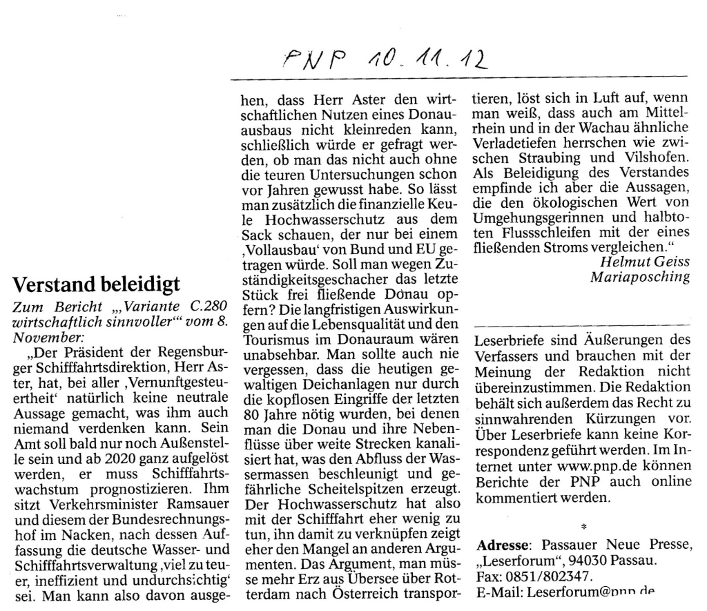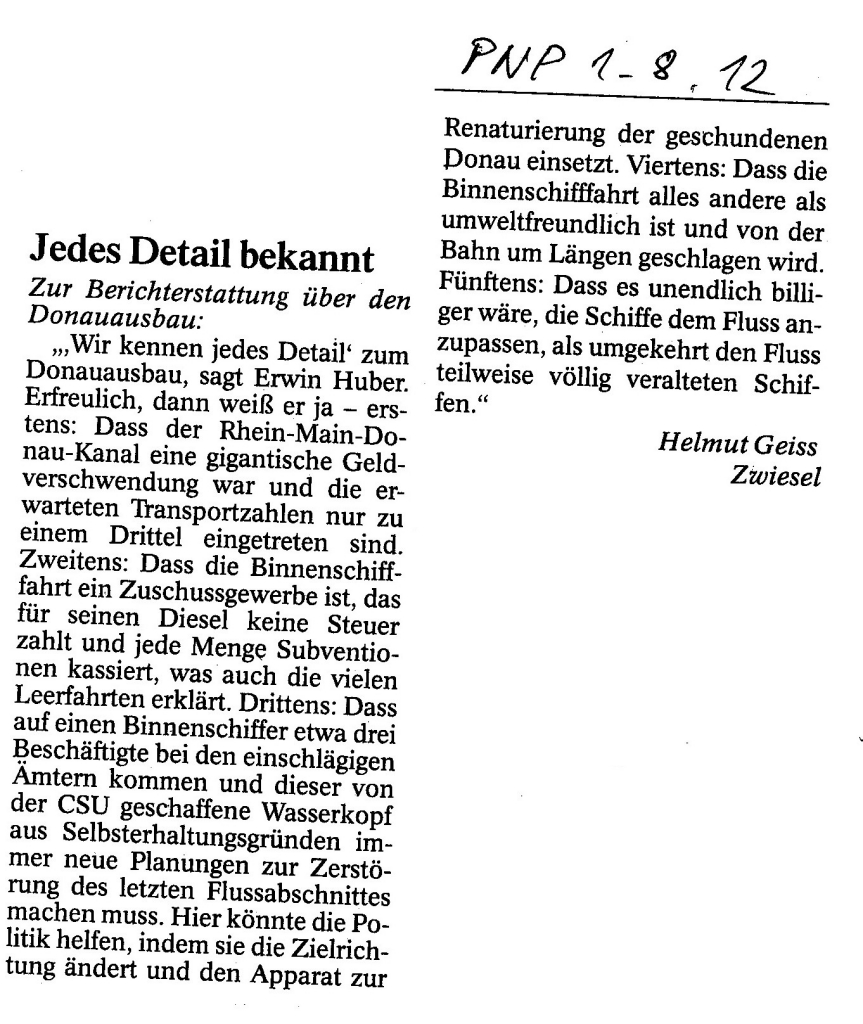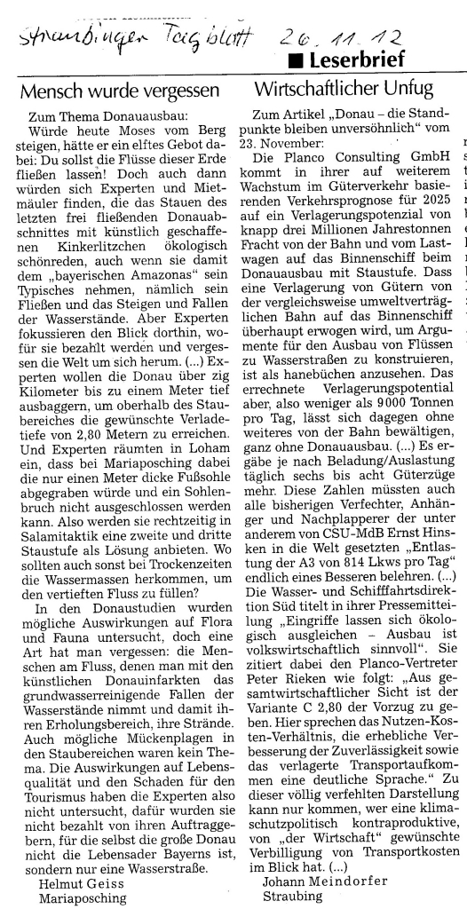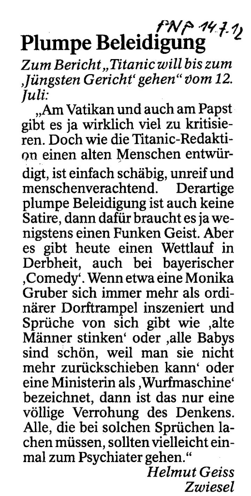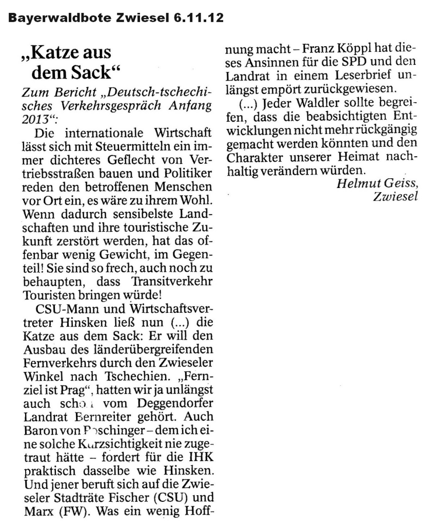 Helmut Josef Geiss - Original-Leserbriefe von 2012