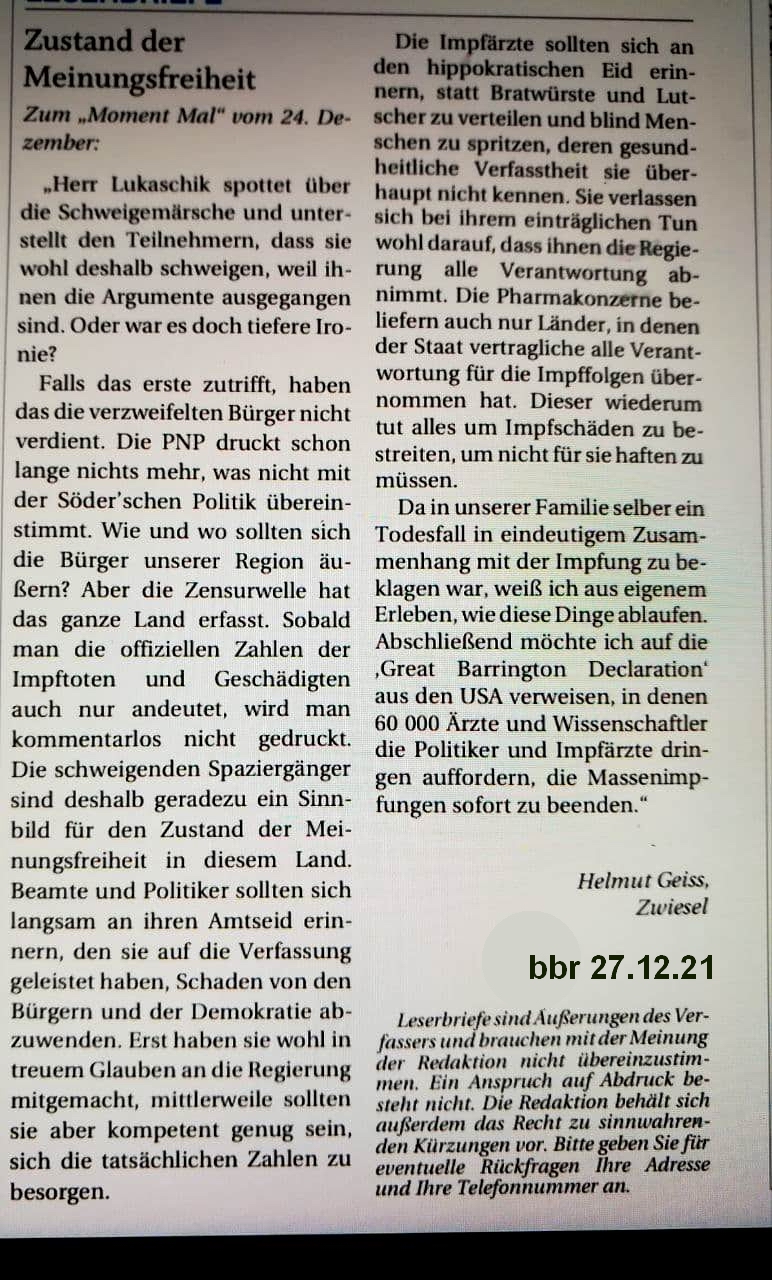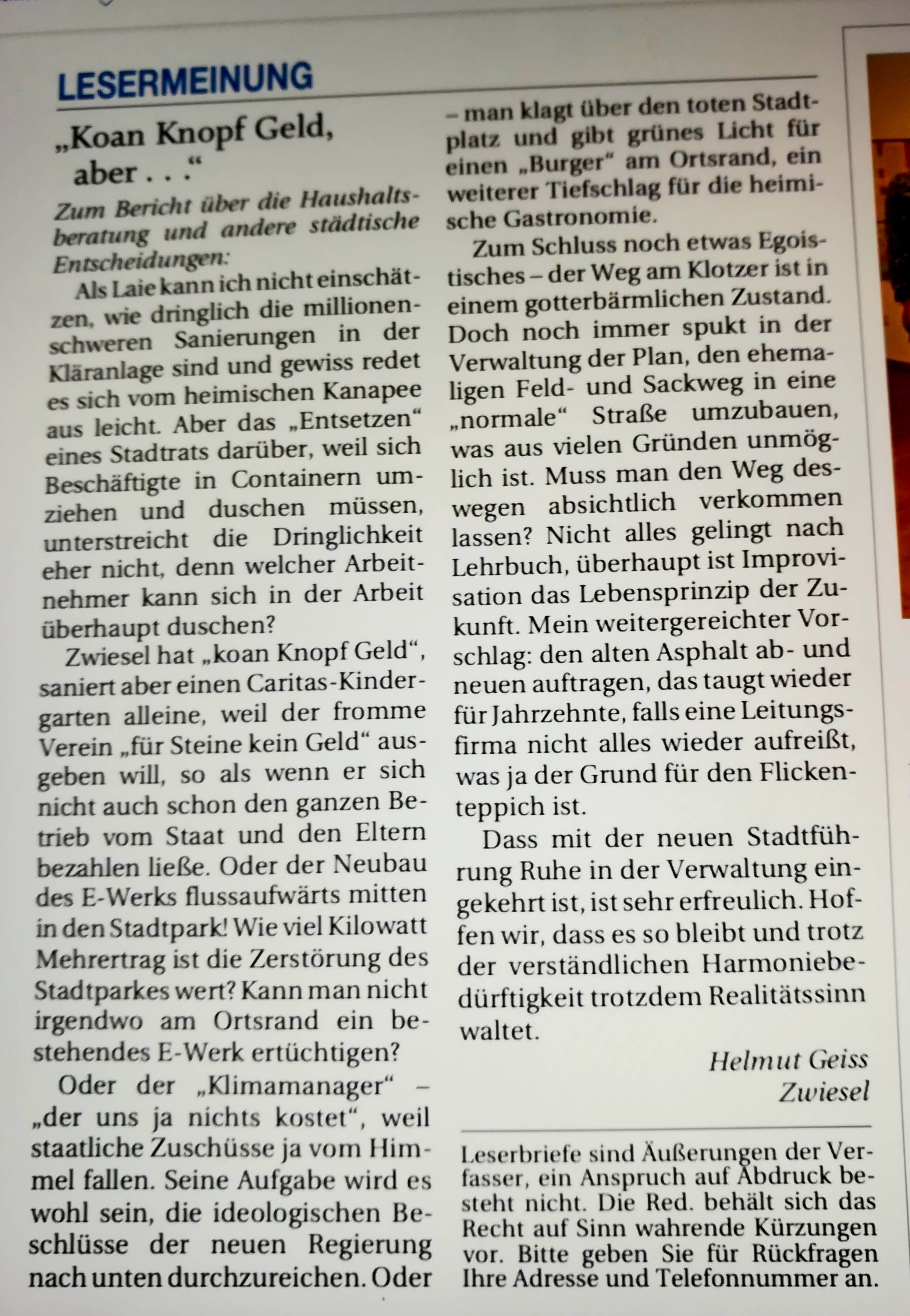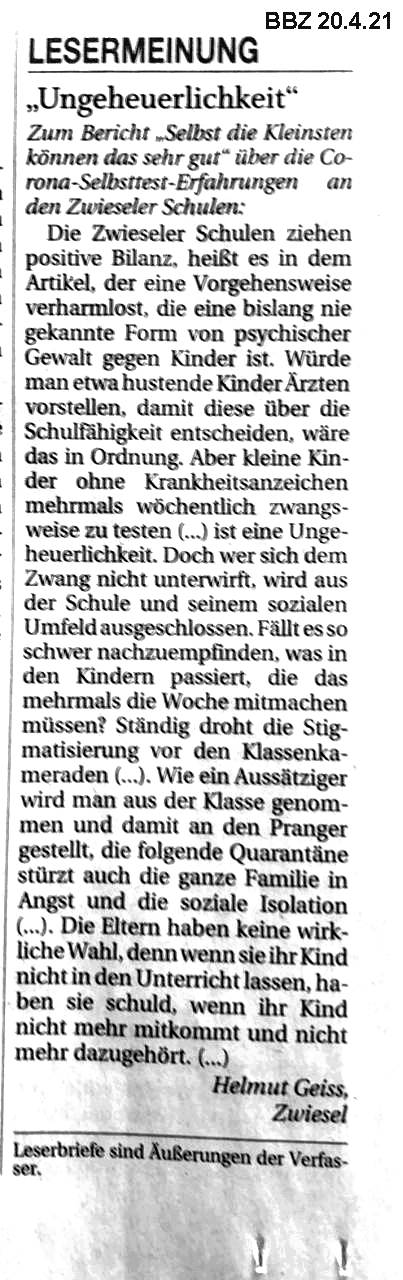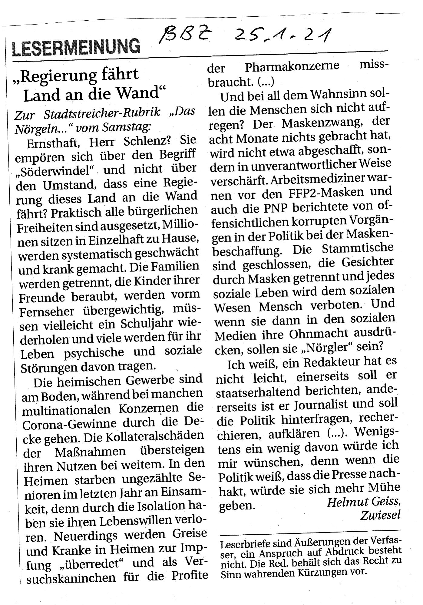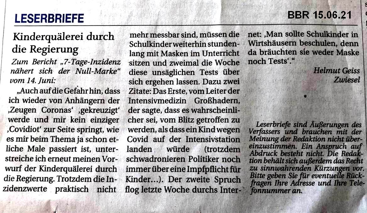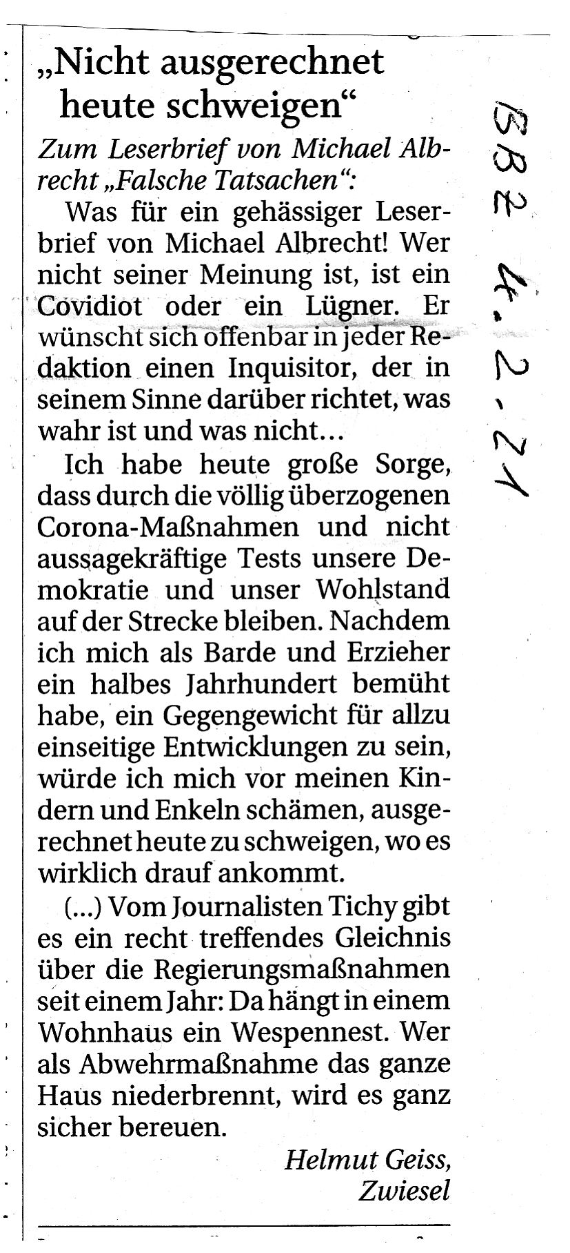 Leserbriefe Geiss Haejm 2021